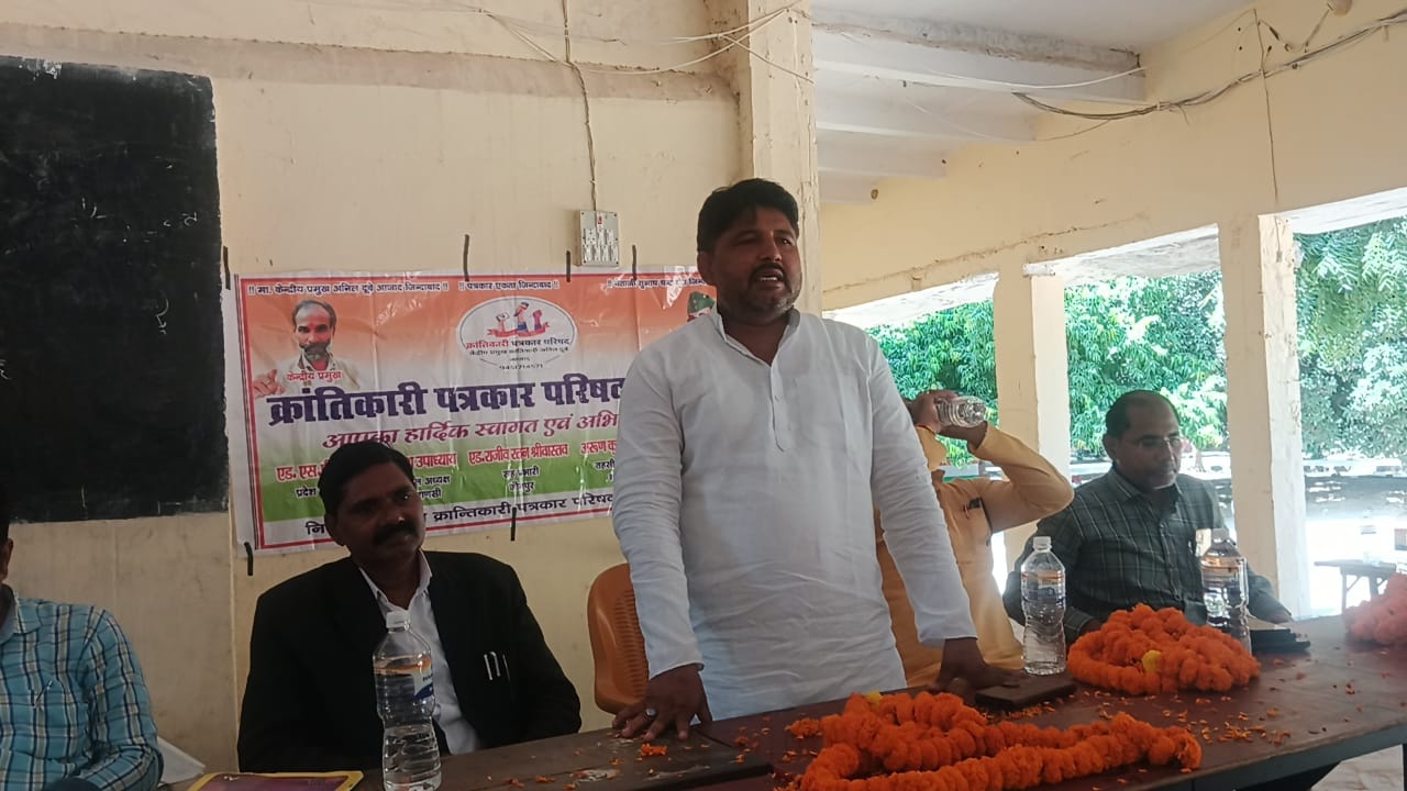गंगाराम वर्मा ने अपना विचार व्यक्त किया जिला अध्यक्ष चंद्रजीत यादव ने कहा एकजुट होकर ही हम पत्रकारों के खिलाफ हो रहे हैं अत्याचार की लड़ाई लड़ सकते हैं अन्यथा अकेला पत्रकारिता नहीं कर सकता आए दिन पत्रकारों के साथ फर्जी मुकदमा एवं मारपीट की घटनाएं होती रहती है फिर कब बुराइयों के खिलाफ हम एकजुट होते हैं संगठन की मजबूती के क्रम आगामी 9 अक्टूबर को जिला मुख्यालय पर क्रांतिकारी पत्रकार परिषद का विशाल जिला सम्मेलन आयोजित किया गया है जिसकी तैयारी के लिए सभी साथी अपनी ताकत का एहसास कारण और जहां सदस्यता अभियान नहीं चला है कमेटी का गठित नहीं हुई है वहां के लिए सदस्य बनाएं 24 घंटे अपने लिए काम करते रहें किंतु उसी में से एक दिन का समय निकाल करके विशाल जिला सम्मेलन में हर हाल में पहुंचना अनिवार्य है इस अवसर पर तहसील अध्यक्ष अरुण यादव हमने अपना विचार करते हुए मासिक बैठक में समस्त पत्रकार भाइयों को समय से मीटिंग में पहुंचने का निर्देश दिया इस कार्यक्रम में खुटहन ब्लाक प्रमुख बृजेश यादव भी उपस्थित रहे अवसर पर जिला उपाध्यक्ष अजय ,,बहादुर, जिला महासचिव नसीरुद्दीन, जिला विधिक सलाहकार शेर बहादुर यादव, जिला संगठन मंत्री अनिल कुमार शर्मा, जिला महासचिव हीरामणि गौतम, जिला सचिव मोनू कुमार, तहसील कमेटी के तहसील अध्यक्ष अरुण कुमार यादव ,तहसील उपाध्यक्ष रिंकू उपाध्याय, तहसील सचिव दिलीप यादव ,तहसील मीडिया प्रभारी उमेश कुमार, तहसील उपाध्यक्ष सज्जाद आसिफ, तहसील संगठन मंत्री विनोद कुमार यादव,तहसील महासचिव मनोज कुमार सिंह, ब्लॉक सुइथा कला कमेटी ब्लाक महासचिव रामविलास, ब्लॉक सचिन राम अनुज, ब्लॉक उपाध्यक्ष हिमांशु पांडे ,खुटहन ब्लॉक कमेटी ब्लॉक अध्यक्ष जगदीश ने मौर्य, ब्लाक महासचिव धर्मेंद्र कुमार बिन्द, ब्लॉक उपाध्यक्ष संदीप सोनी, एडवोकेट अभिषेक कुमार बिन्द , सभी पत्रकारों ने बारी- बारी अपने विचार को व्यक्त किया और पत्रकार साथियों को एकजुट होने का संदेश दिया प्रवेश कुमार विजय कुमार बिन्द अमित कुमार आदि उपस्थित रहे।